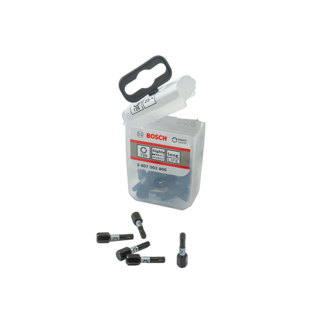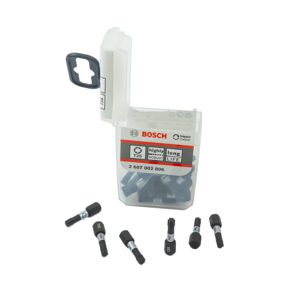 Die Impact Control Schrauberbits von Bosch Professional sind sehr robust und für den schwersten Einsatz ausgelegt. Die spezielle Torsionszone sorgt für extreme Haltbarkeit bei Dauerbelastung, z.B. mit einem Schlagschrauber. Sie bestehen aus modifiziertem S2 Stahl und werden mit einem optimierten Wärmebehandlungsprozess hergestellt, dies sorgt für große Haltbarkeit und Höchstleistung bei Verschraubungen.
