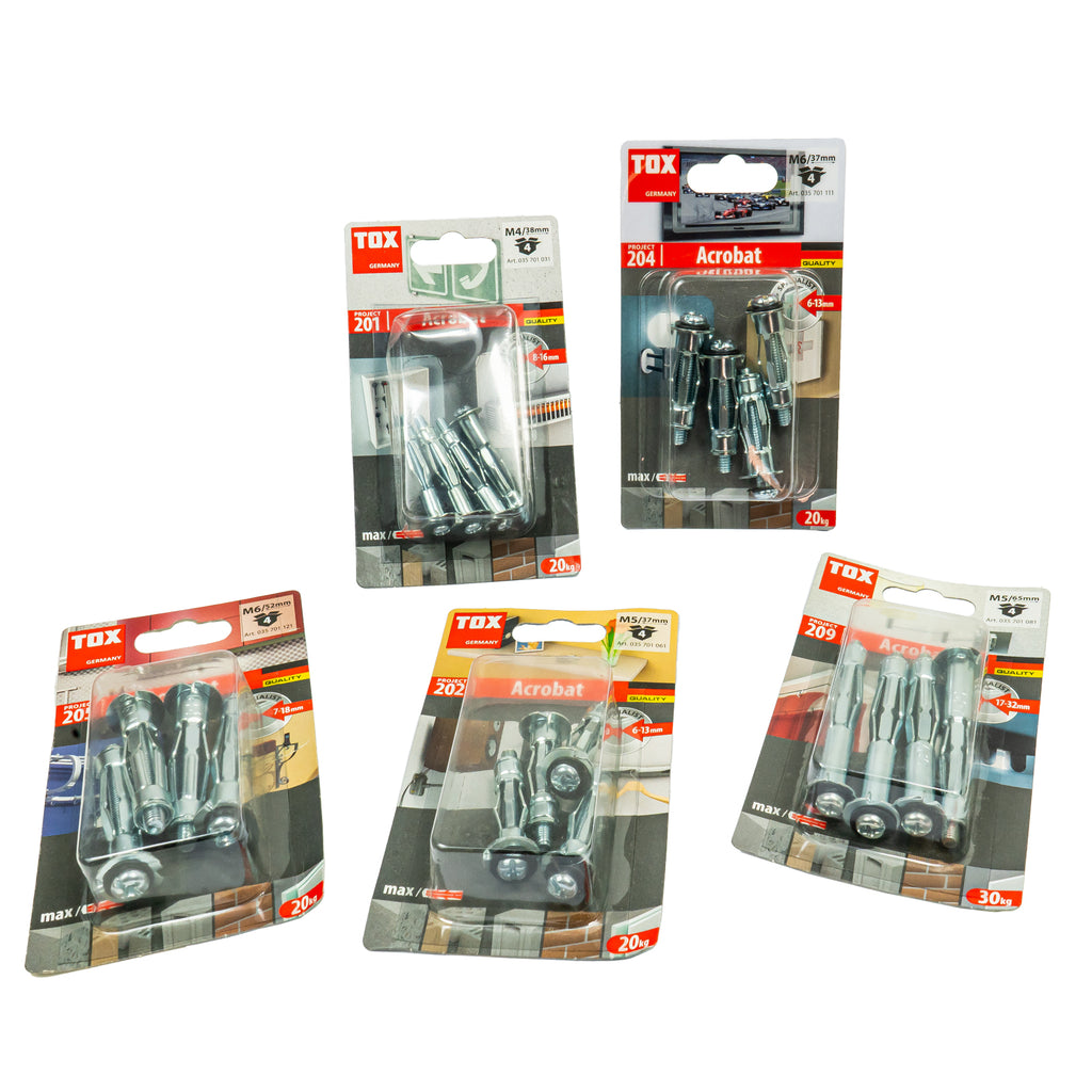 - 4 x Acrobat Metall-Hohlraumdübel, Größe nach Wahl