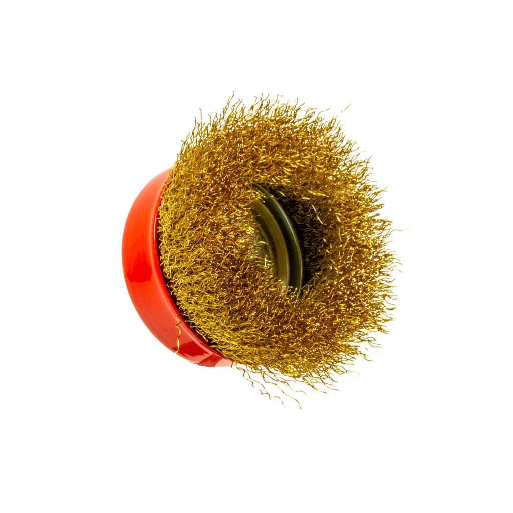 - 1 x X-LOCK Topfbürste Ø 75 mm, 0.3 mm gewellter, vermessingter Draht